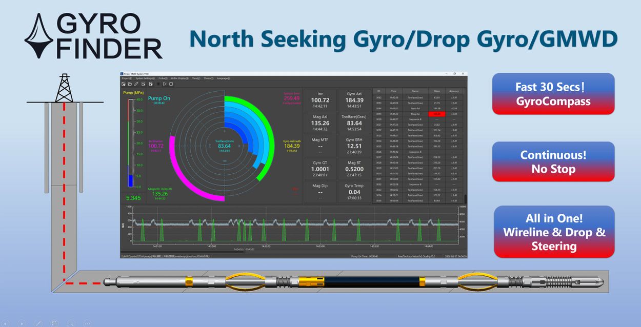 We look forward to meeting you and sharing our professional solutions for downhole survey tools. GyroFinder is pleased to launch our latest North Seeking Continuous Gyro, Drop Gyro, GMWD